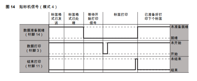 4 = 正常情况下,结束打印信号为低,仅当标签已被打印并定位 20ms 信号为高。