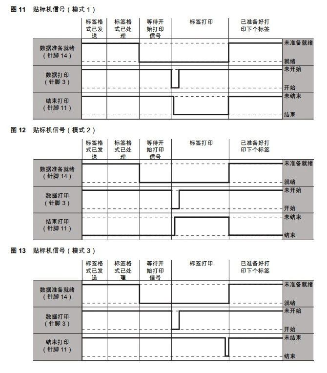 3 = 正常情况下,结束打印信号为高,仅当标签已被打印并定位 20ms 信号为低。